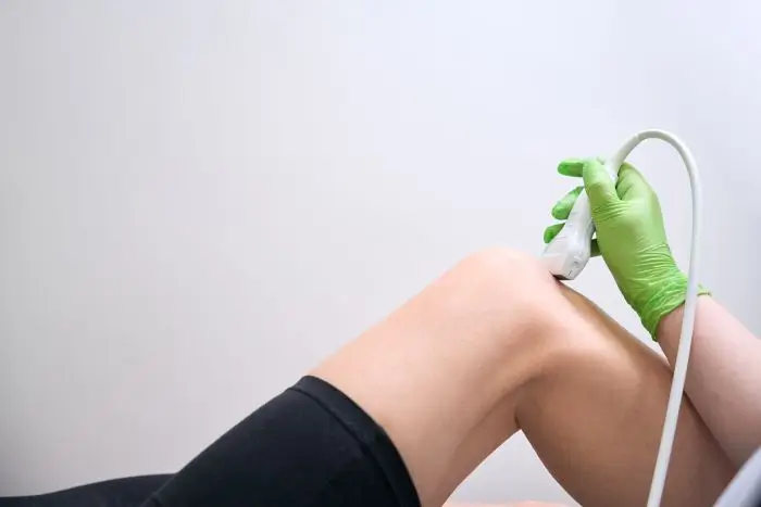 Lekar ultrazvučnom sondom detaljno pregleda strukture zgloba